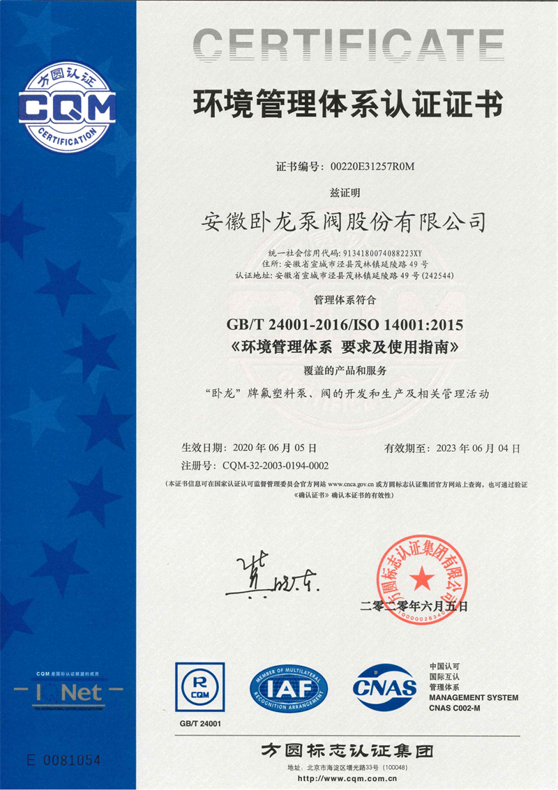 安徽臥龍泵閥股份有限公司位于風(fēng)景秀麗的江南古鎮(zhèn)——安徽省涇縣茂林鎮(zhèn)。公司前身涇縣氟塑料制品廠創(chuàng)建于1985年,是國內(nèi)較早引進中科院上海有機化學(xué)研究所專利材料——"氟塑料合金",并以此耐腐蝕材料專業(yè)生產(chǎn)制造化工泵、閥、襯氟管道等產(chǎn)品的企業(yè)。公司經(jīng)過歷次的改制變革,2015年更名為安徽臥龍泵閥股份有限公司。